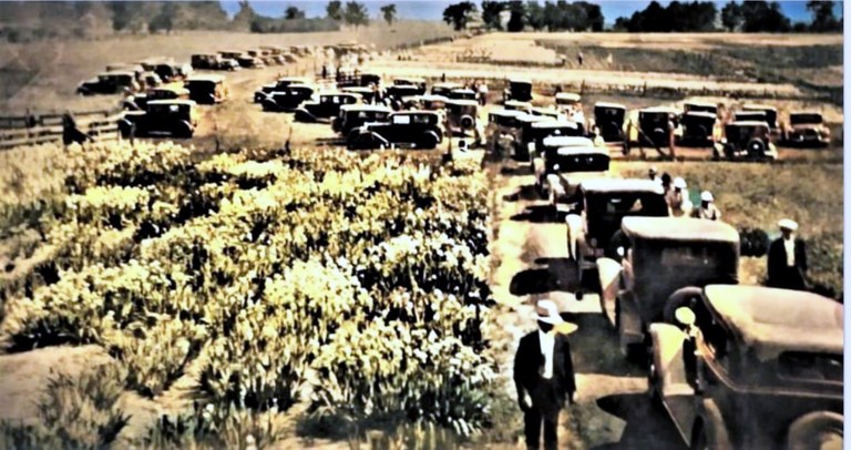 The iris fields were the creation of William B. Otwell (1863-1941), a national leader in agriculture despite a modest personality. An 1884 Blackburn graduate, Otwell traditionally planted 25 acres of farmland near Carlinville as an iris field, which attracted as many as 50,000 visitors annually to see the beauty of the irises in bloom.